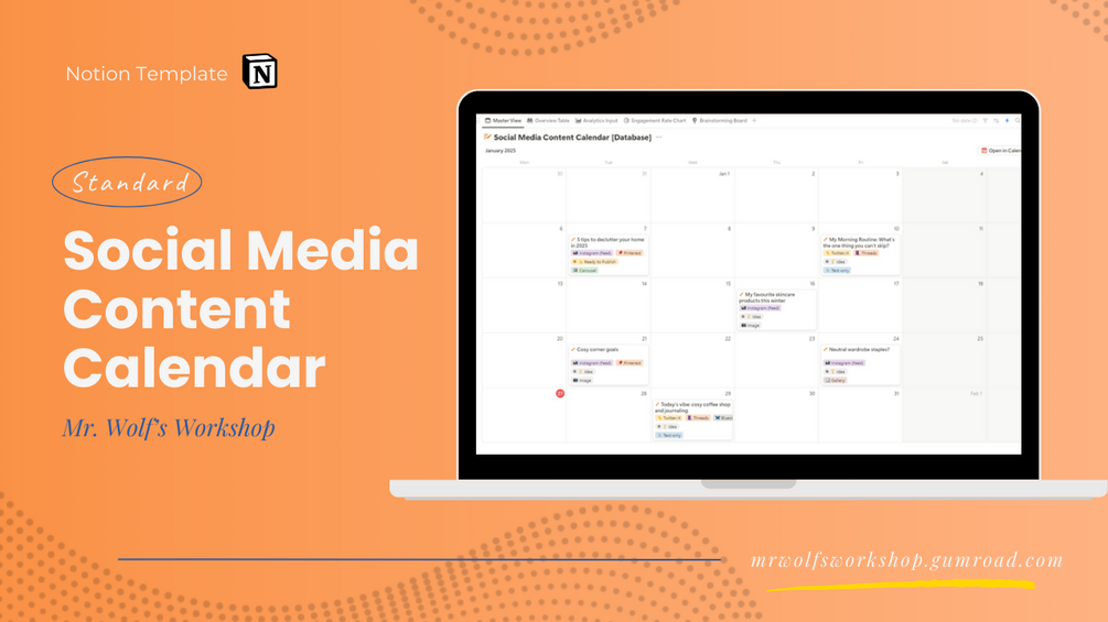 Created to suit the needs of anyone publishing social media content, whether you are a lifestyle vlogger, cosy gaming creator, or a passionate solopreneur, this template has everything you need to plan, execute, and measure your content like a pro.