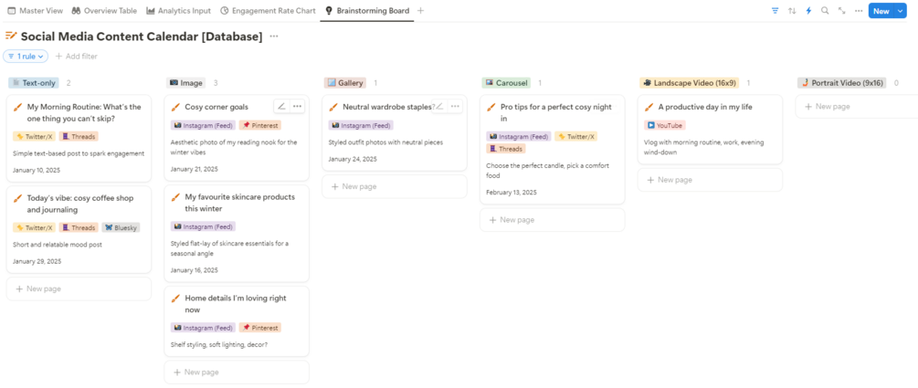 Created to suit the needs of anyone publishing social media content, whether you are a lifestyle vlogger, cosy gaming creator, or a passionate solopreneur, this template has everything you need to plan, execute, and measure your content like a pro.